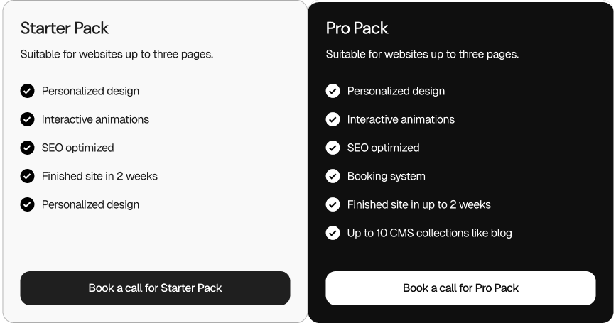 Choose one of our webdesign website packs — Starter or Pro.